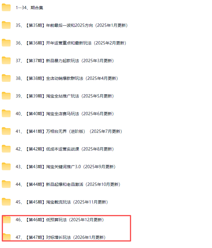 08.店铺循环优化法:截流—测款—上新,让流量池滚雪球.mp4 - ├─46.【第46期】低预算玩法(2025年12月更新)