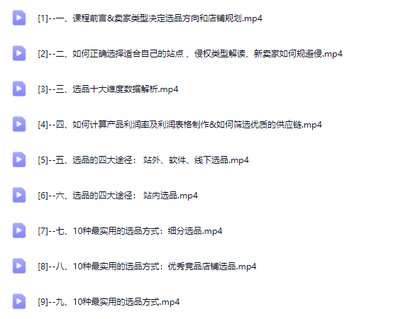 | ├──[8]–八、10种最实用的选品方式:优秀竞品店铺选品.mp4 1.57G