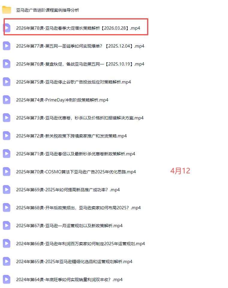 - #26年4月12日更新:2026年第78课-亚马逊春季大促增长策略解析