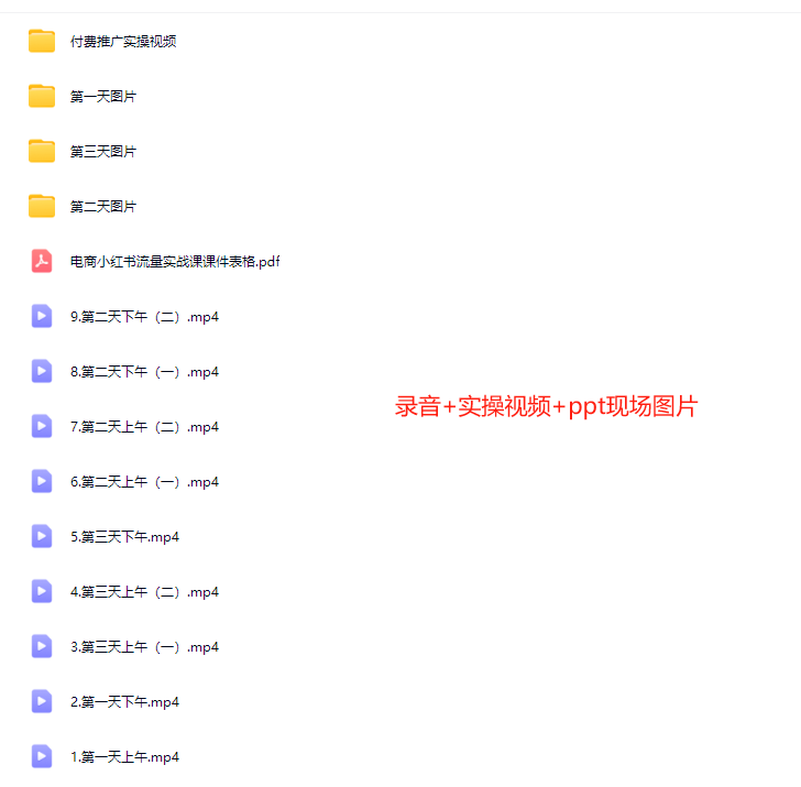 - #录音+现场ppt照片+课件表格+付费推广实操视频