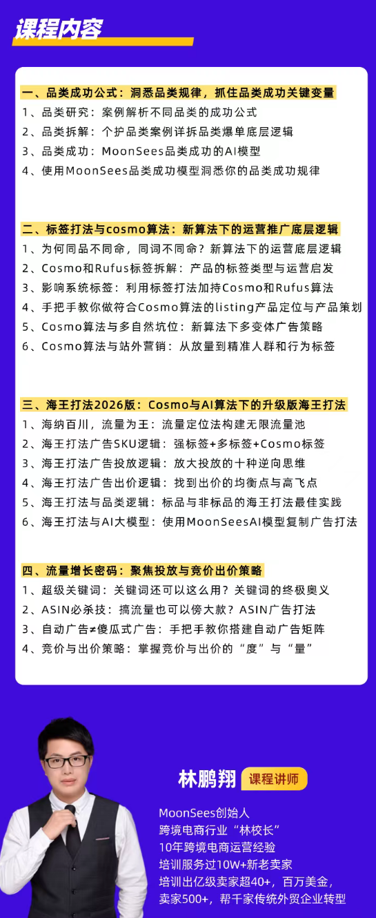 • #12月25日更新12小时线下课:第70期亚马逊广告高阶课程·MoonSees广告优化大师班-厦门