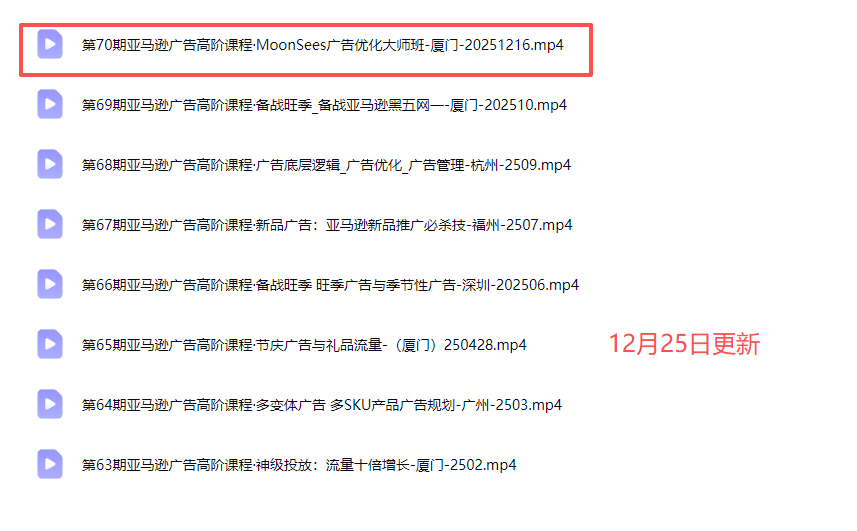• | └──第70期亚马逊广告高阶课程·MoonSees广告优化大师班-厦门-20251216.mp4