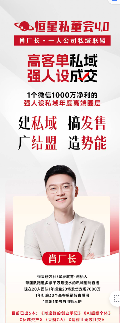 - 高客单私域,强人设成交! 建私域,搞发售,广结盟,造势能! 1个微信1000万净利的,强人设私域年度高端圈层