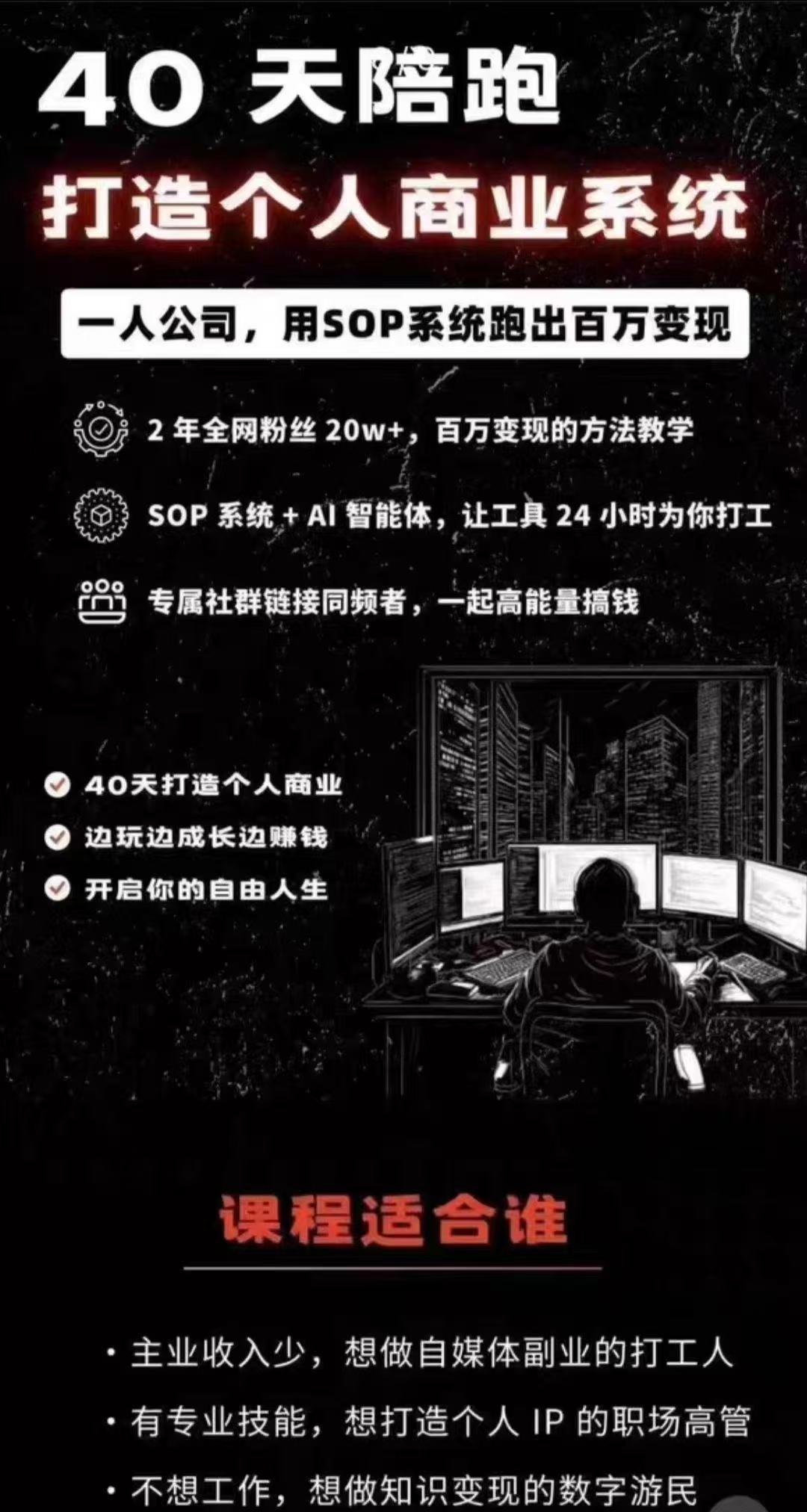 - 40天陪跑打造个人商业系统,一人公司,用SOP系统跑出百万变现。