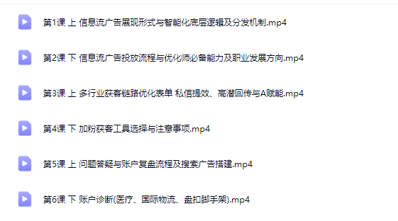 | ├──[2]–创意-2、创意在信息流投放中的作用.mp4 6.35M