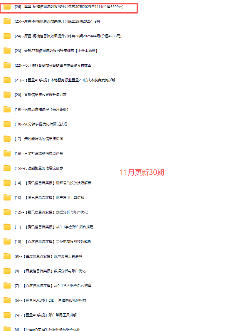 | ├──[1]–1、更新—巨量AD2.0新版介绍.mp4 30.60M