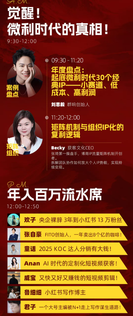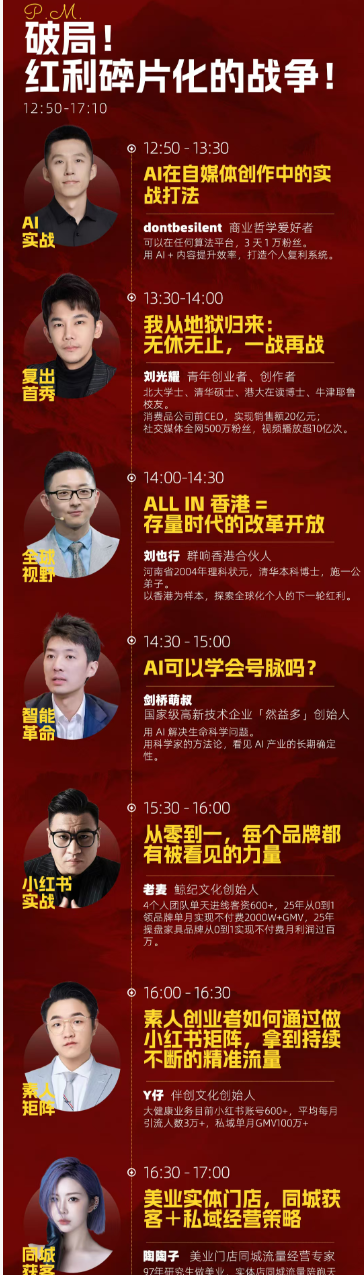 • 20 位嘉宾,12 ‮时小‬高密度高能量分享,10000+ IP创业者线下面对面
