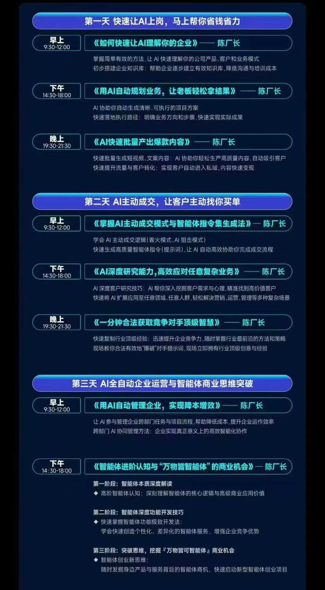 - 陈厂长11月25-27号AI智能体实战创业营线下课全程高清录像
