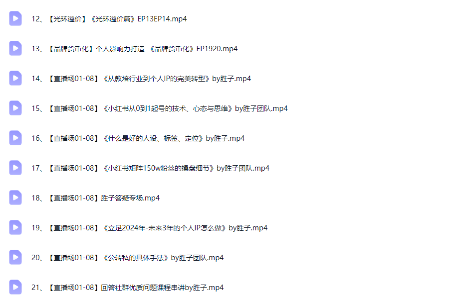 ├──19、【直播场01-08】《立足2024年-未来3年的个人IP怎么做》by胜子.mp4 168.57M