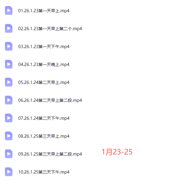• 1月23-25号线下课,21小时录音+字幕,包括千川投放细节sop、优化方向、复盘sop