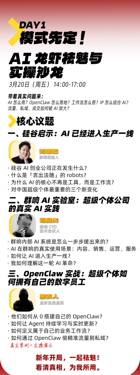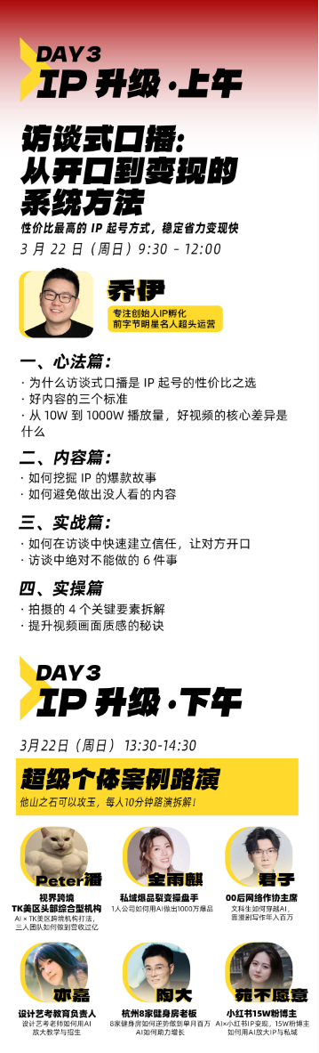 • 3天2夜 4位导师4场私密夜话12大案例路演