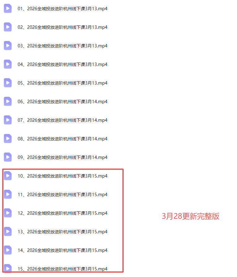 - 3月13-15号线下课,21小时录音+字幕,包括千川投放细节sop、优化方向、复盘sop