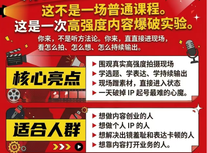 - 100 不条是重点,开拍始才是我们的目的,来素拍材,用刘思毅和阿的星流量起号,来学我们的选题、内容、拍摄、剪辑全流程。